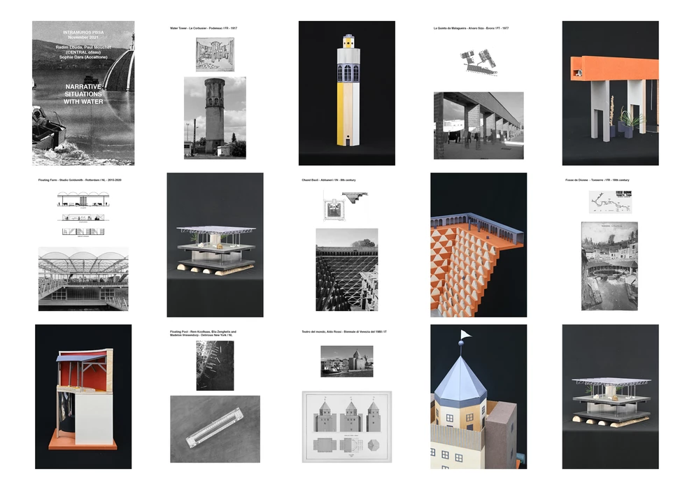 Learning from Water is part of a dynamic (series) of reflections set up by CENTRAL, Maxime Delvaus and occasionally Sophie Dars for several years on the question of the tenuous, perceptible or imperceptible, link that architecture maintains with its context and the making of the city. All these reflections are interested in the question of the missing link between architecture and urbanism and in the expression of the collective values of certain projects within the city itself. The challenge is to identify virtuous urban situations and to reveal their potential in order to propose an extrapolation in a synthetic form. These extrapolations, once isolated from their contexts, take on a certain form of 'universality' and can therefore be used as a project tool. These situations are generally the result of an assembly of intentions of which the city is made, they can be intended or inherited, anodyne or spectacular, architectural or not.... Each chosen context constitutes for us a pool of potential projects with its own particularities and specificities. We have to learn from what exists, from what is already there, from what has been and from what already works without always knowing why.