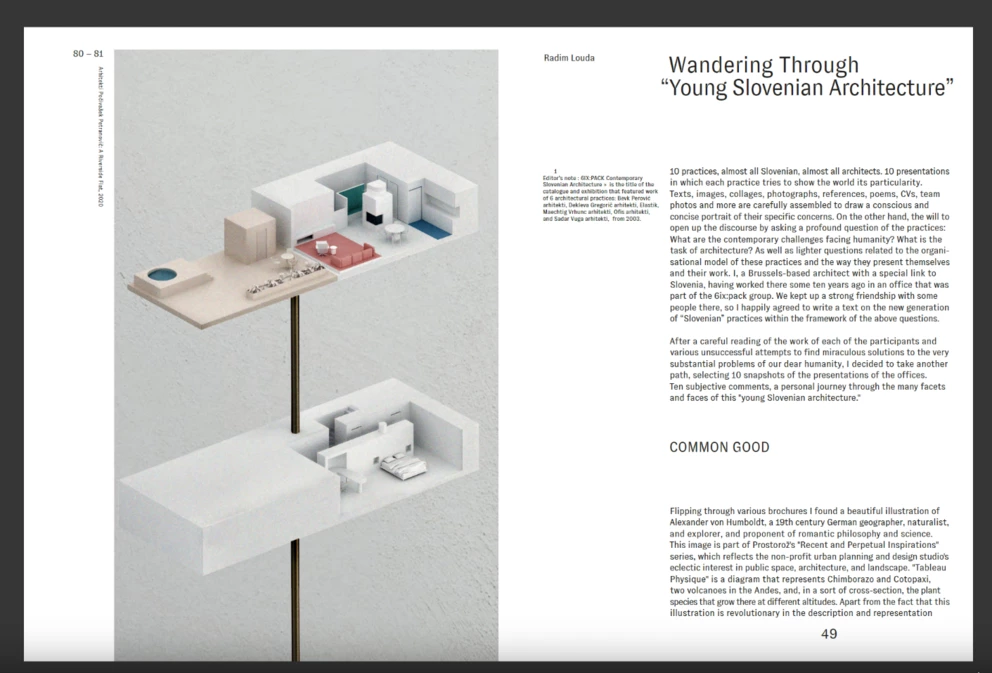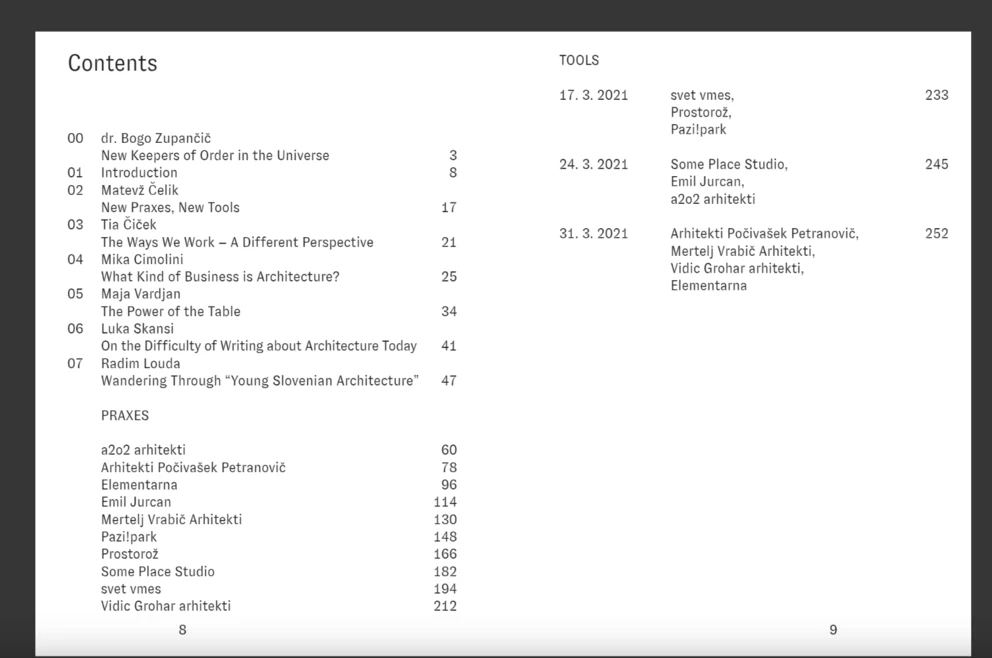 The exhibition New Praxis, New Tools aims to shed light on the way contemporary “Slovenian” architectural practices operate. It is a coproduction of the Centre for Creativity and Škuc Gallery, where it will be on show between February 24 and March 31. Under the auspices of the Museum of Architecture and Design’s interdisciplinary platform Centre for Creativity, Mika Cimolini and Matevž Čelik put a spotlight on the work process of selected architectural organisations, in particular their work philosophy and projects. The selected studios showcase the diversity in approaches to architectural design and reveal a novel understanding of architectural practices and processes. The exhibition is accompanied by an eponymous catalogue featuring texts by Radim Louda, French architect and professor at the Versailles school of architecture; Luka Skansi, architectural historian and associate professor at Politecnico di Milano; Tia Čiček, art historian and curator at Škuc Gallery; Maja Vardjan, architect and architecture curator at MAO; Matevž Čelik, architectural writer and critic, MAO director Bogo Zupančič, and the catalogue’s editor Mika Cimolini, architect and CzK programme manager.