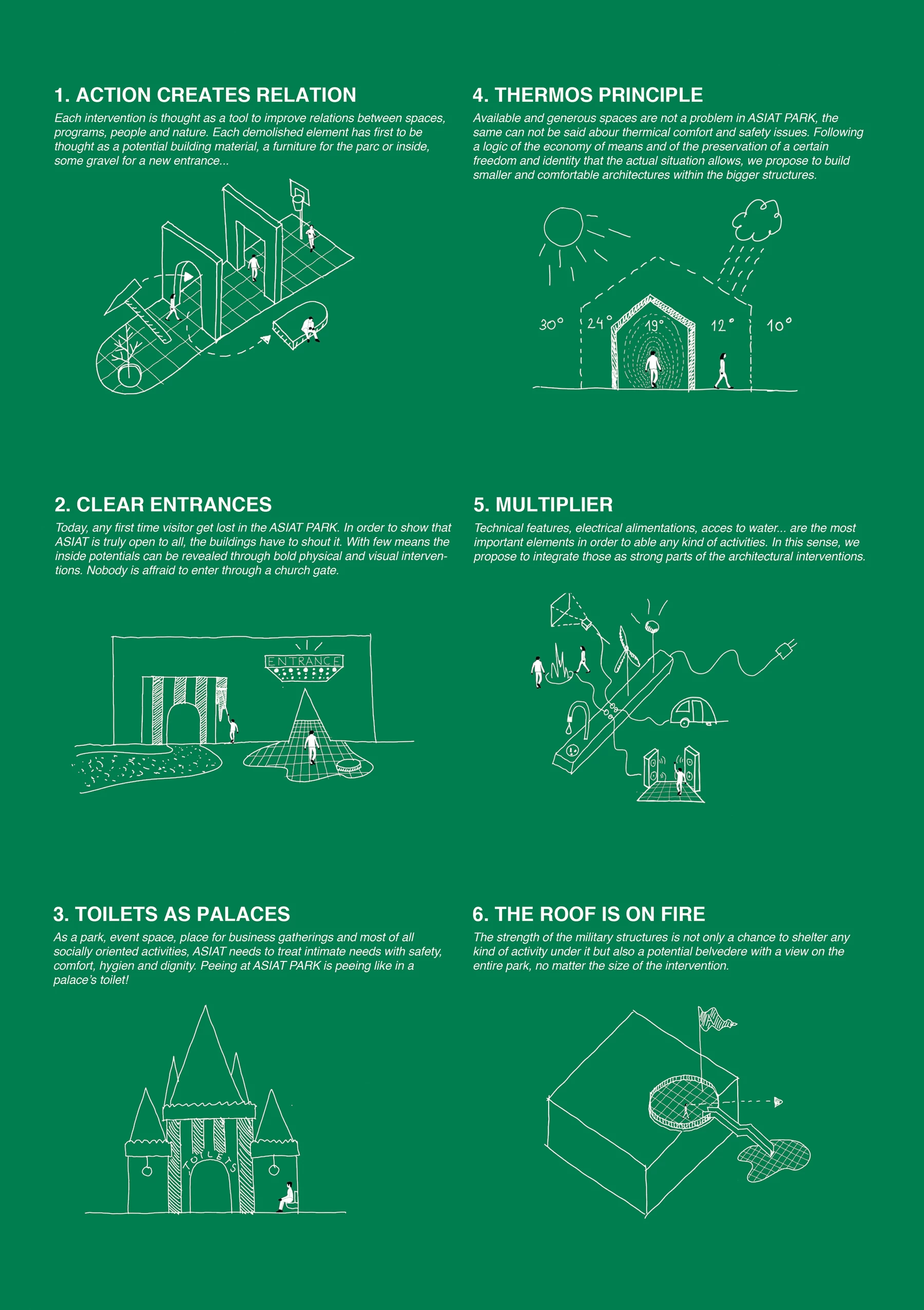 For the next 10 years Asiat Park will act as a public green space with facilities for people and events. On local as well as supra level, Asiat Park is an equipment meant for all, offering a world of possible activities, always in contact with nature.