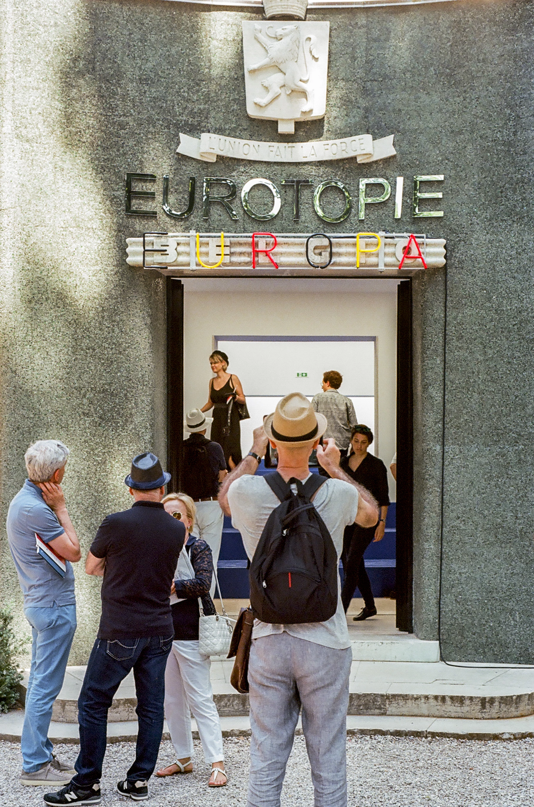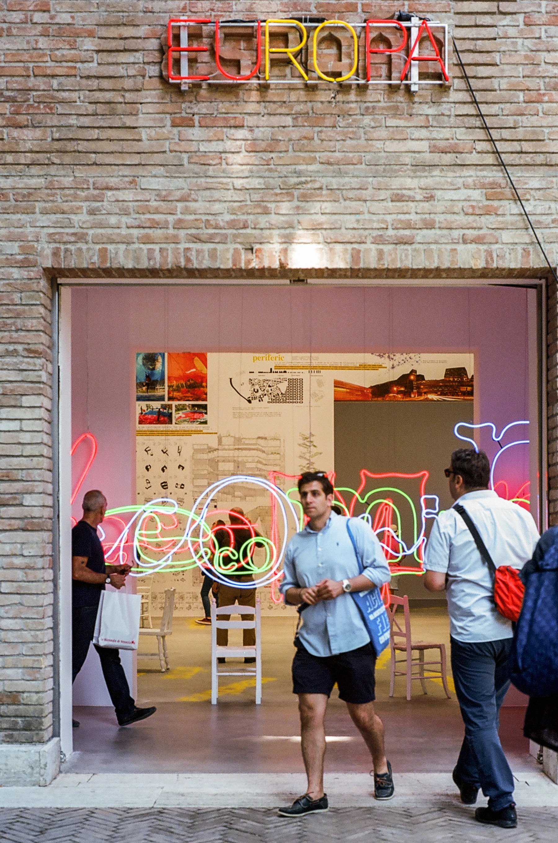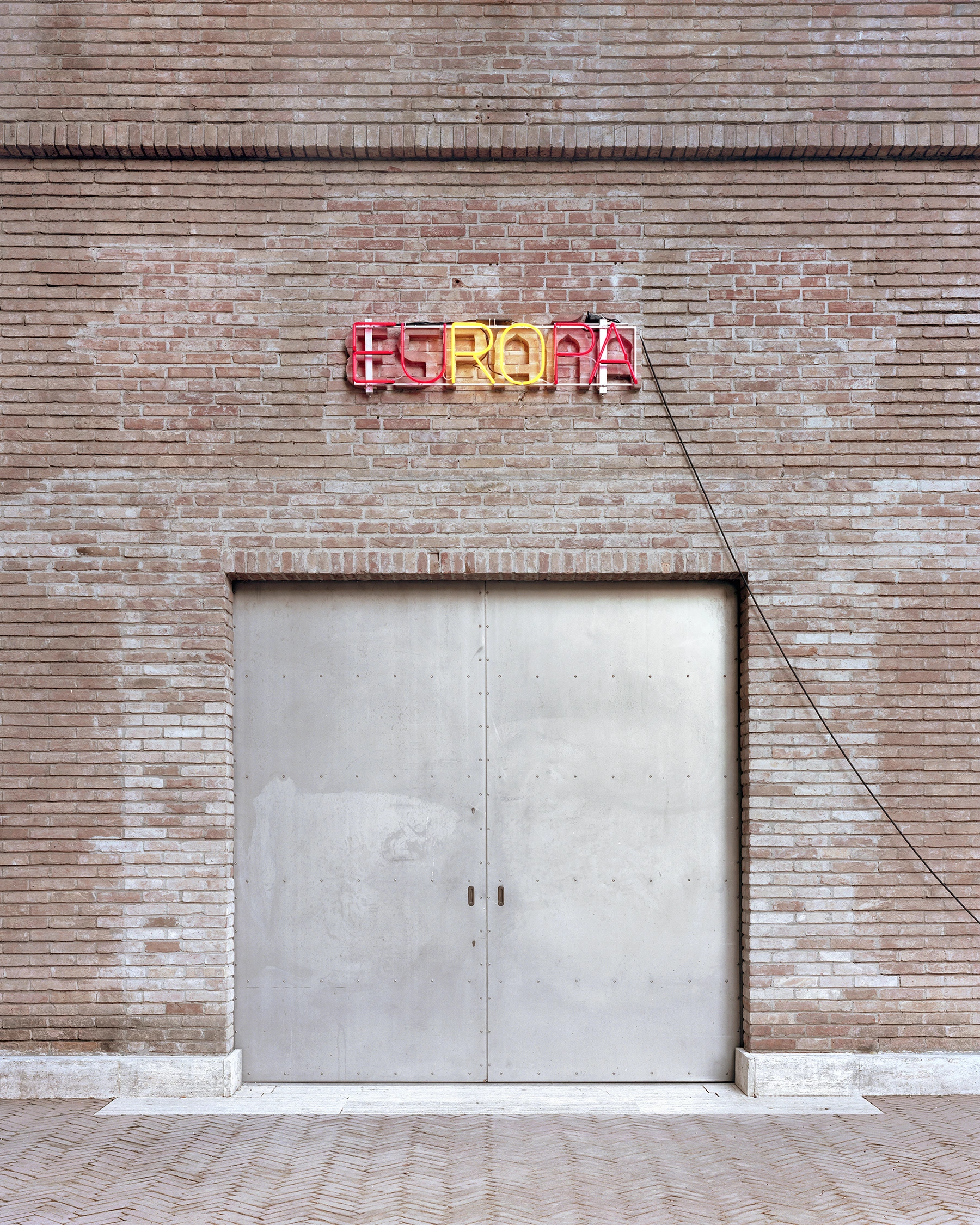 ESPAÑA, BELGIO and OLANDA – three pavilions with their own architectural identities and nation’s names displayed on their façades, a simplified but true tale of national pride. As a counterpoint to the current spirit of withdrawal into oneself we propose to change the country’s name on the pavilions’ façades by superimposing six letters; a common symbolcelebrating openness, collaboration and courage that outshines nationalistic and bureaucratic powers, a geographical and humanist bond between the three countries and many others: EUROPA in bright and coloured neon lights.