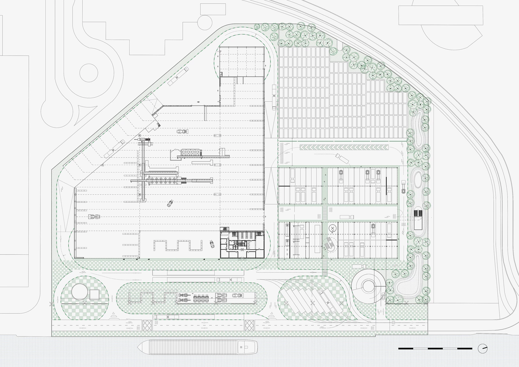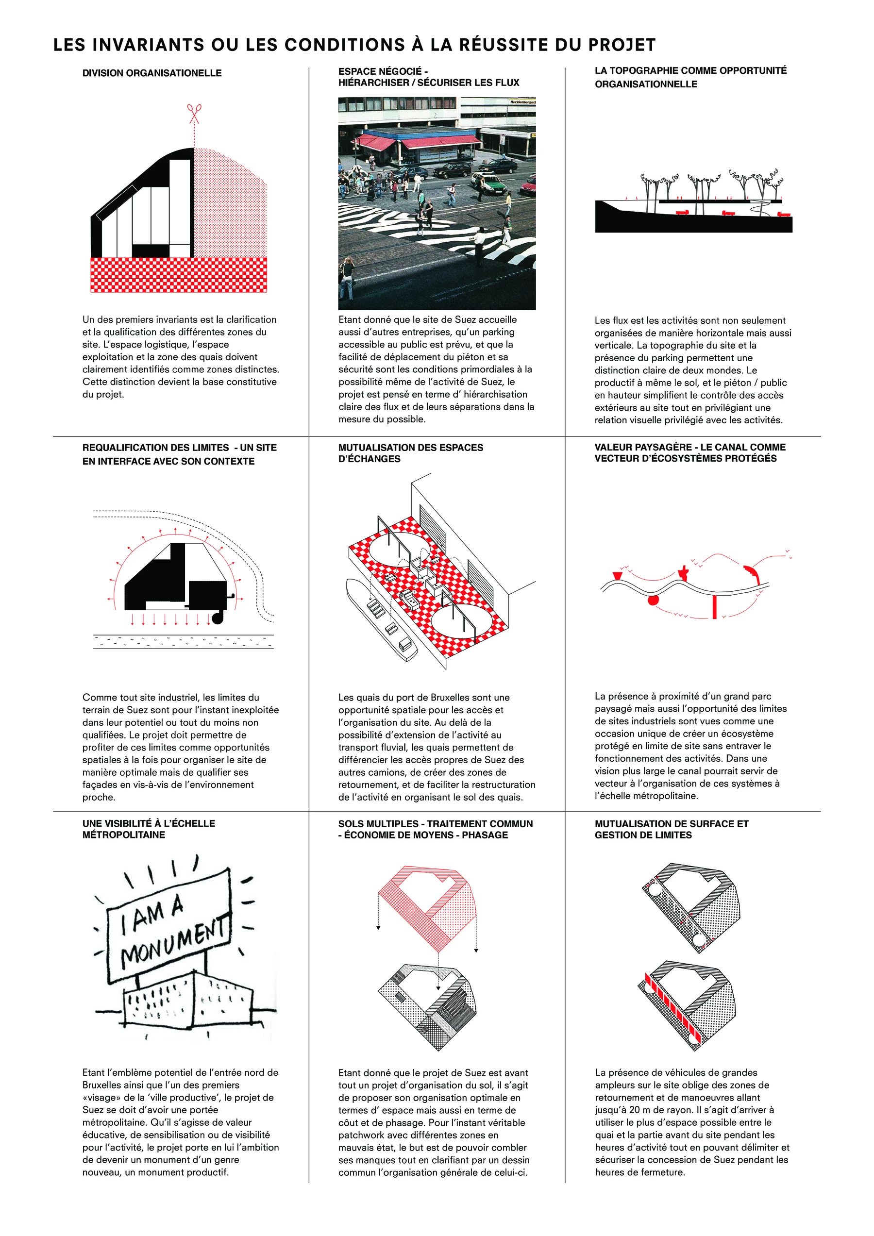 The mission of extending and reorganising the Suez site in Neder Over Heembeek aims at a thorough rethinking of the sites characteristic, which are defined by the port and the production activities of the city of Brussels. The site and the activities of Suez are emblematic on several levels.