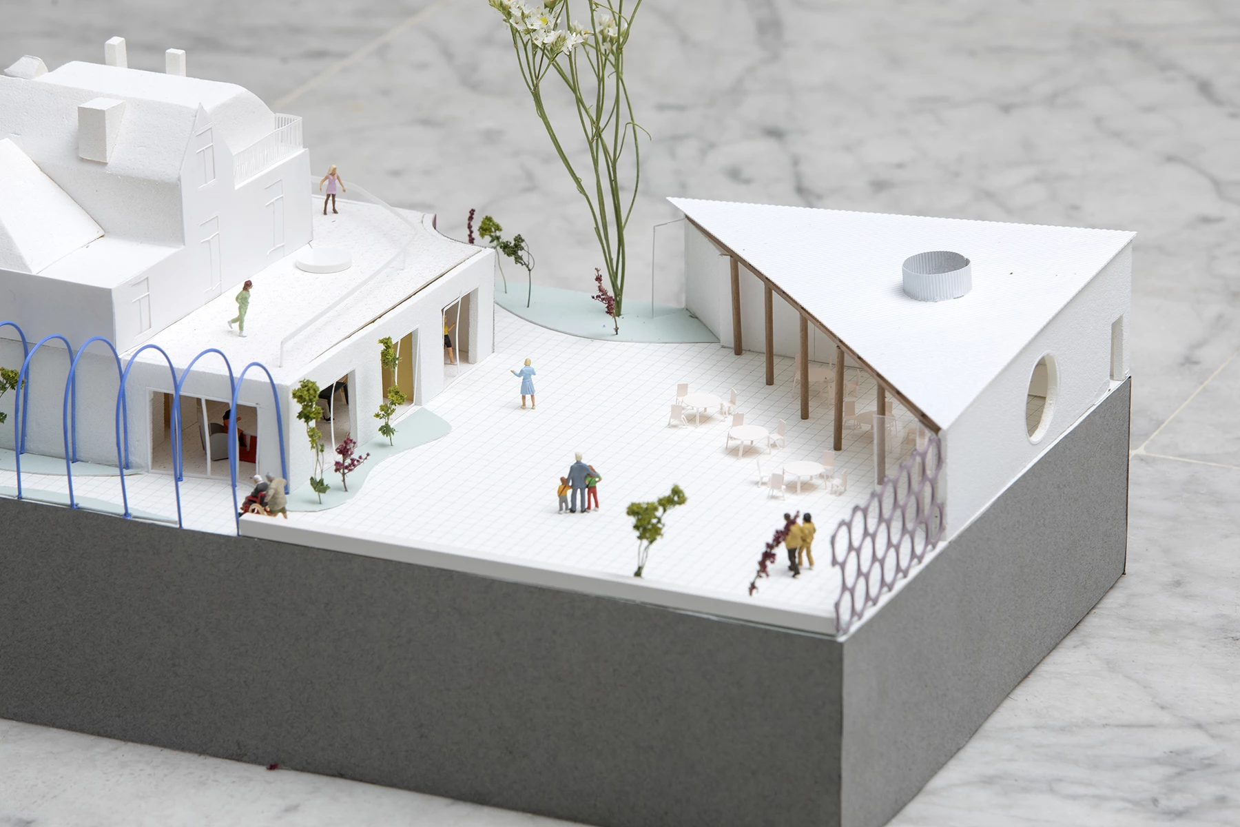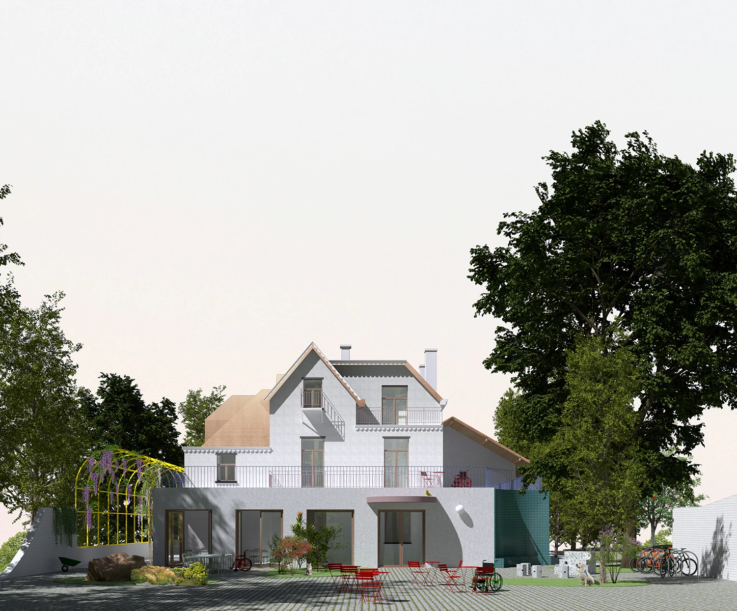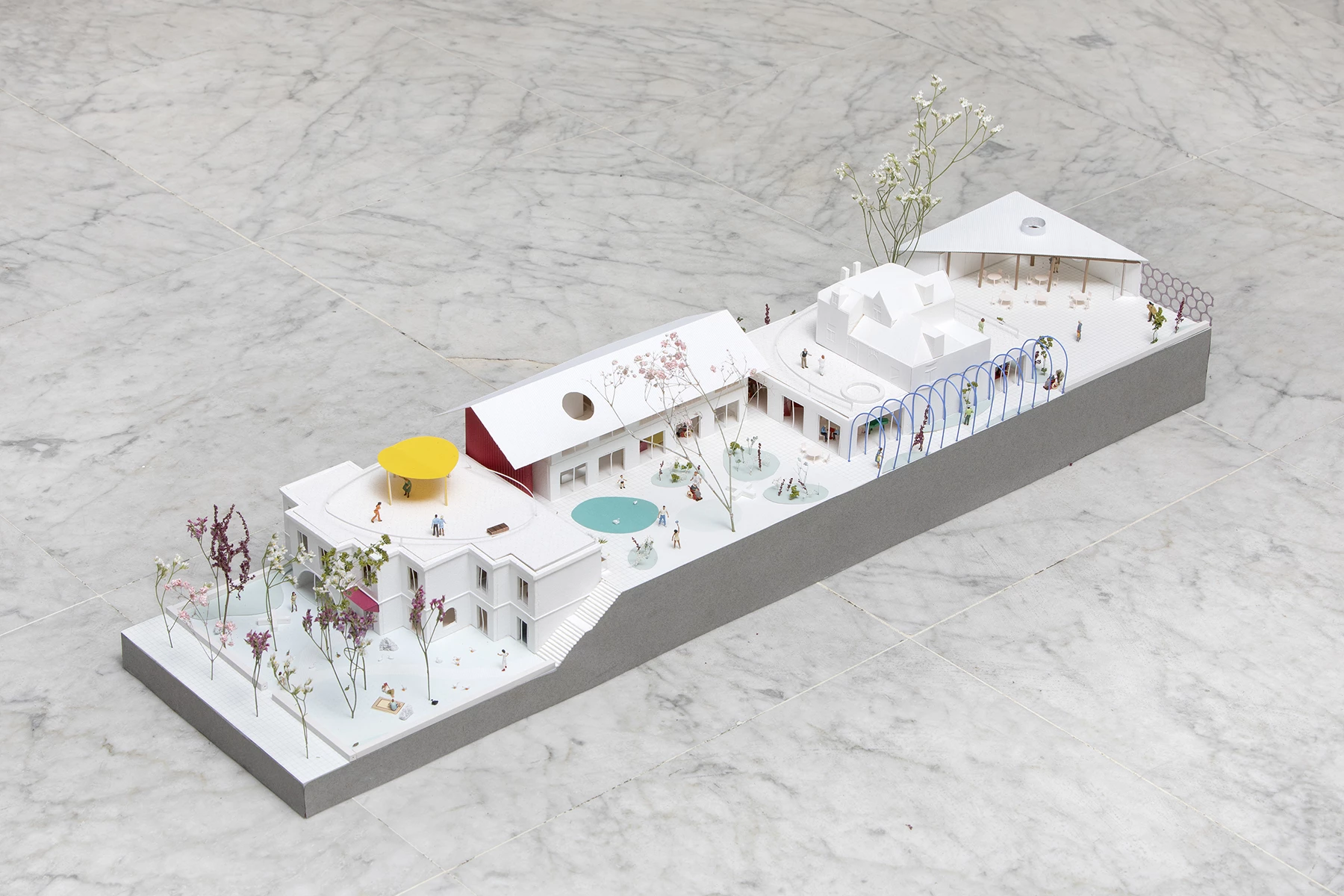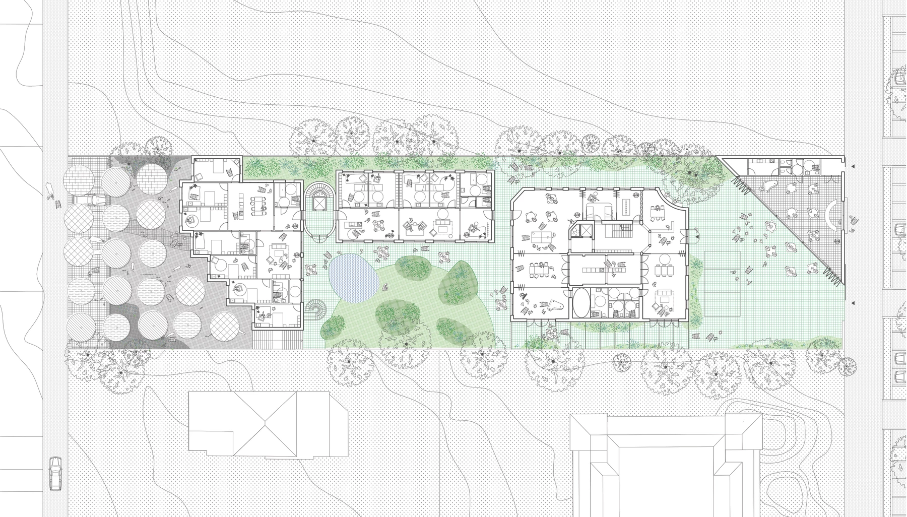 We imagined the center as a microcosm composed of different worlds that are brought to the disabled person. The idea is to create a place where domestic qualities, the home, rub shoulders with places of community, care, learning, but also isolation and intimacy.